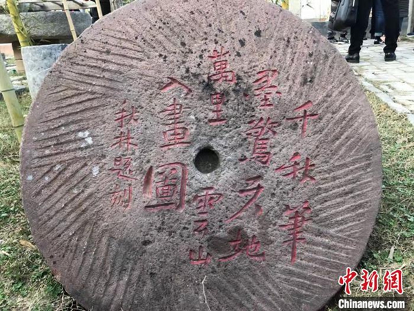 石磨嵌入墻壁再配以書法就變成了一道文化墻?!±畛瘲?攝