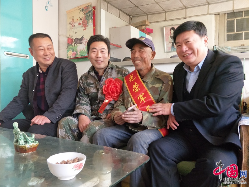 近日,樂亭縣胡家坨鎮西走馬浮村周克軍家中洋溢著濃濃的喜慶氣氛,兒子周迎春因2018年在部隊表現突出榮立三等功,樂亭縣退役軍人事務局的有關負責同志專門來到家中送上喜報和慰問金。