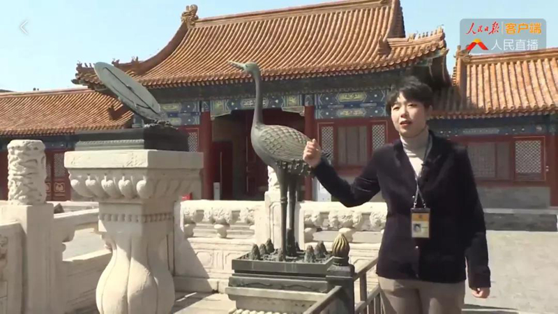 比如,在直播中出現了烏鴉叫聲,宣教部的高希老師介紹,對于入關的滿清來講,烏鴉是吉祥鳥,它們是薩滿教中的天派之鳥,故宮曾專門豢養烏鴉,借用祭祀時喂食。而在平時,也曾在坤寧宮的后面立一根桿子,在桿子上放置雞肉用以喂養烏鴉,這就造成許多烏鴉世代在此居住和聚集。