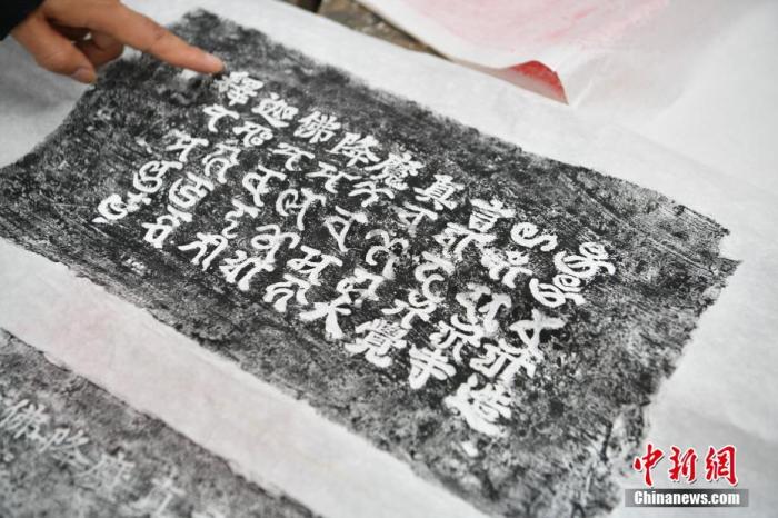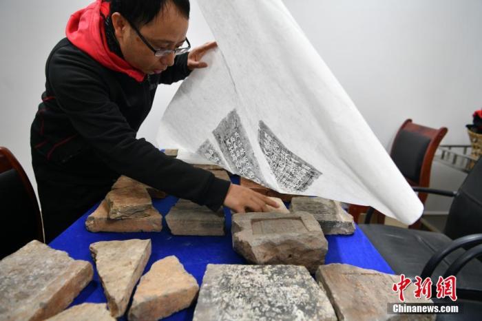 5月27日,尹恒展示塔磚拓片。劉冉陽 攝