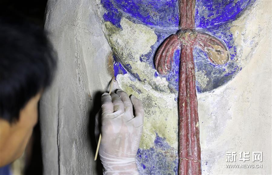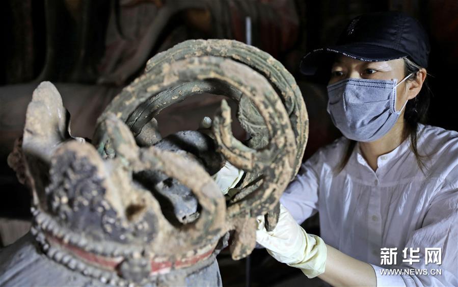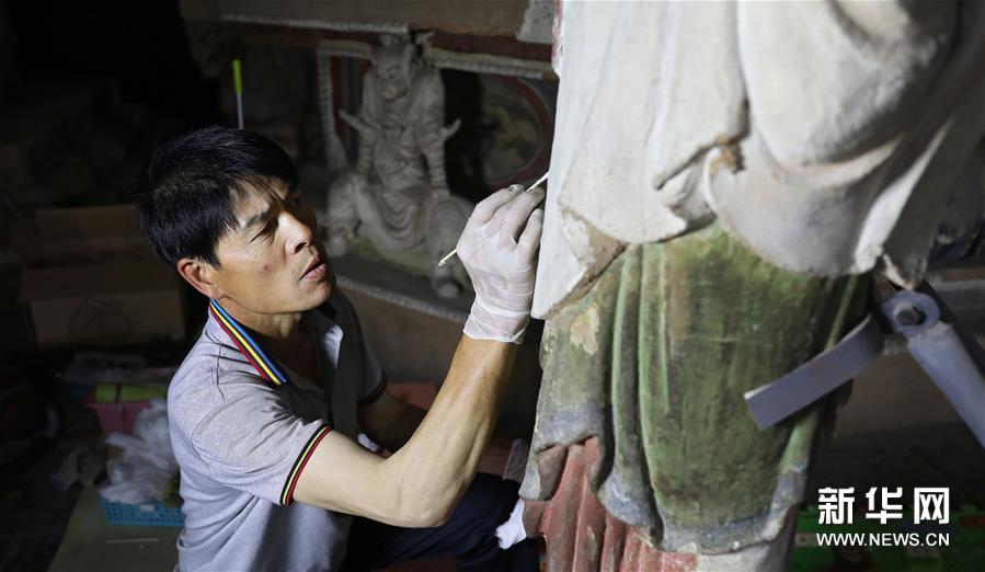 6月8日,工作人員對奉國寺的彩繪泥塑進行保護修復。新華社記者 姚劍鋒 攝