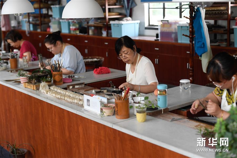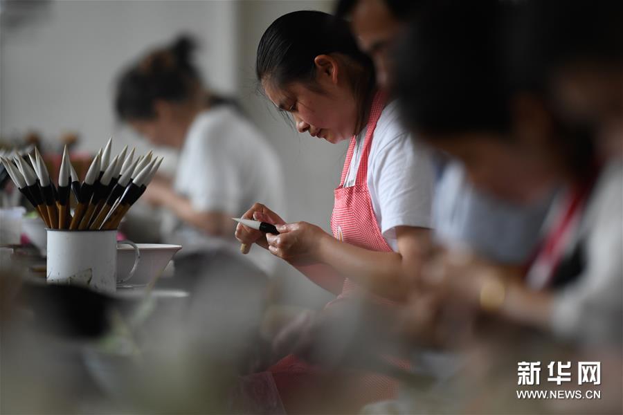 6月17日,湖州市善璉湖筆廠的技師在水盆車間作業。新華社記者黃宗治攝