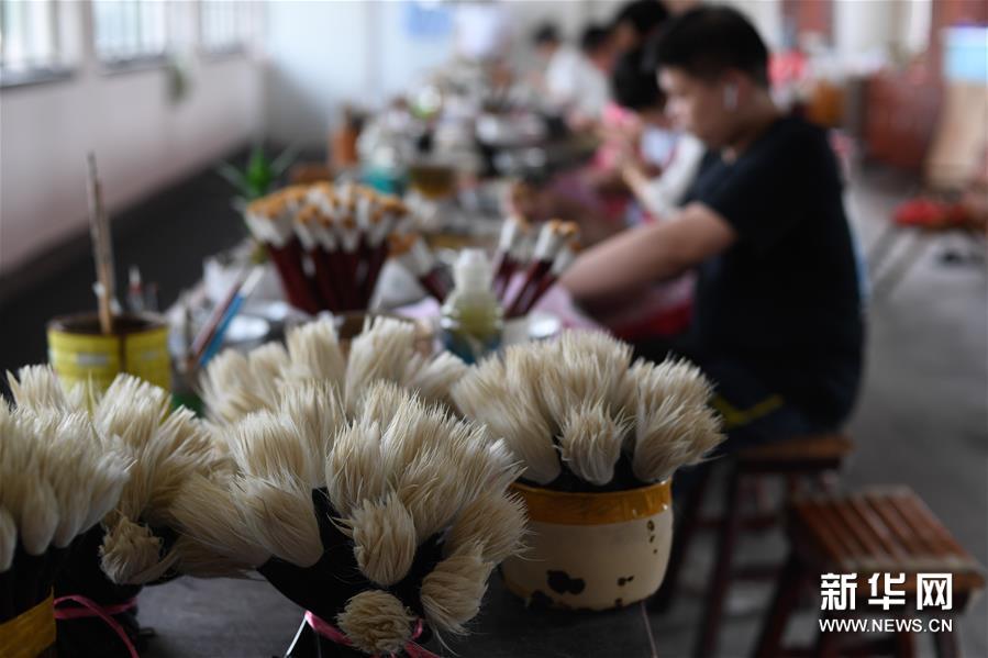 6月17日,湖州市善璉湖筆廠的技師在擇筆車間作業。新華社記者黃宗治攝