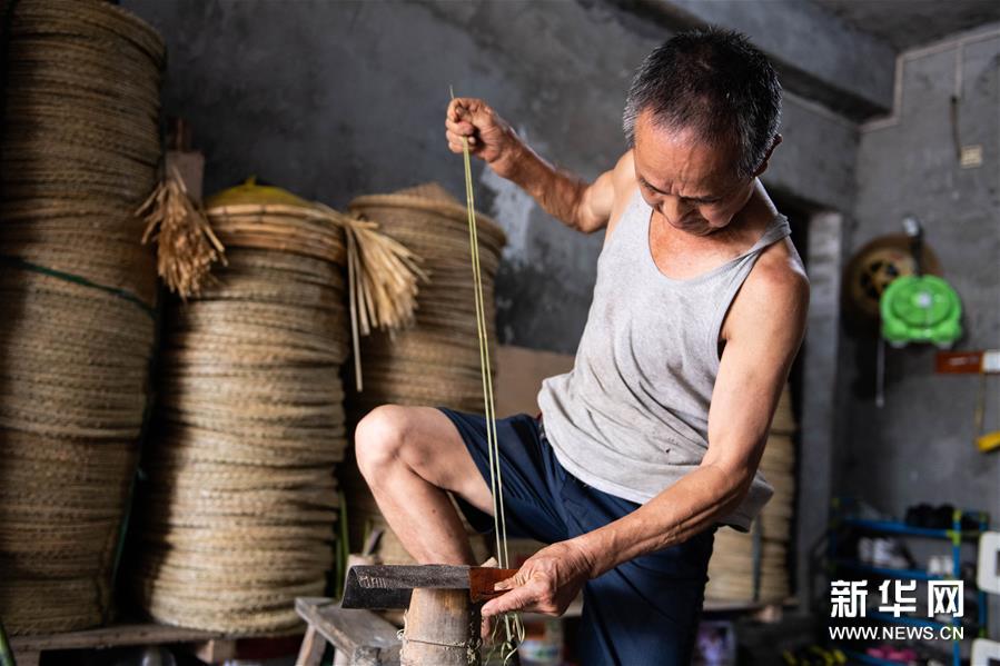6月22日,在中方縣中方村,村民在處理編織斗笠的篾條。新華社記者 陳思汗 攝
