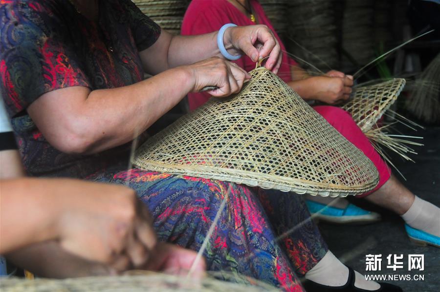 6月22日,在中方縣中方村,村民在編織斗笠。新華社記者 周勉 攝