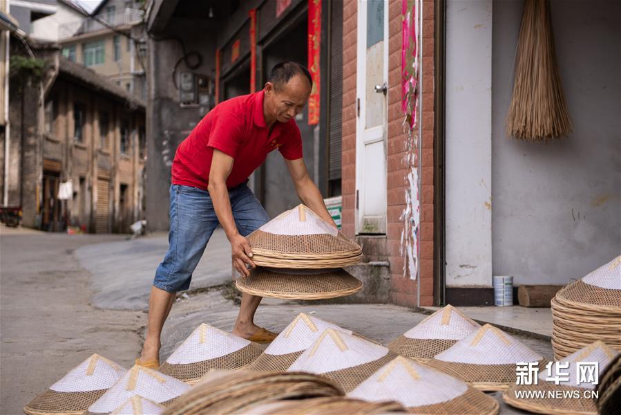 6月22日,在中方縣中方村,村民晾曬斗笠半成品。新華社記者 陳思汗 攝