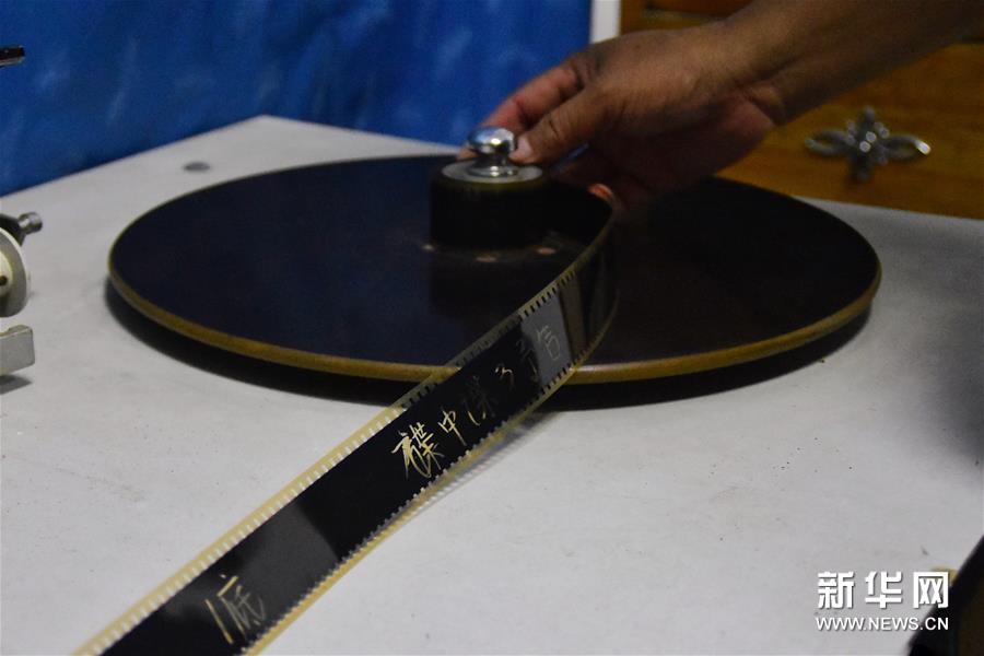 6月30日,朱生榮在當晚電影開播前將膠片調至起始幀。新華社記者 鄭夢雨 攝