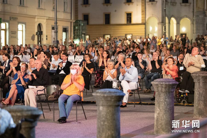 7月1日,觀眾在斯洛文尼亞首都盧布爾雅那觀看藝術節開幕式演出。新華社記者 彭立軍 攝