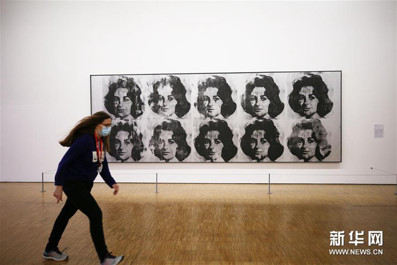 7月1日,一名戴口罩的女子走過在法國巴黎蓬皮杜藝術中心展出的安迪·沃霍爾的作品。新華社記者 高靜 攝