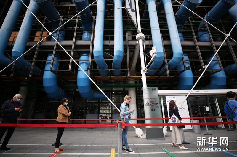 7月1日,參觀者在法國巴黎蓬皮杜藝術中心外排隊等待。新華社記者 高靜 攝