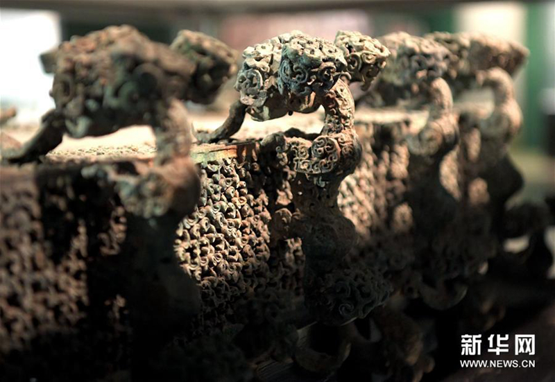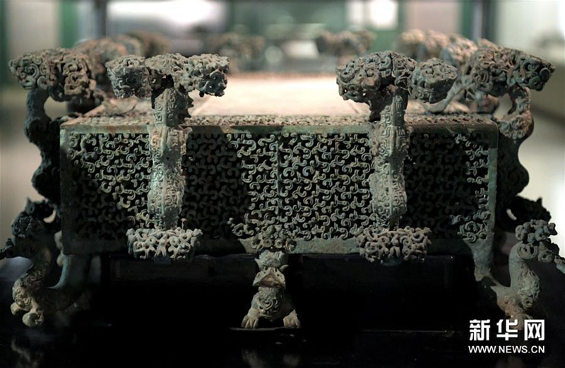 這是河南博物院展廳里的云紋銅禁(2019年11月18日攝)。新華社記者 李安 攝