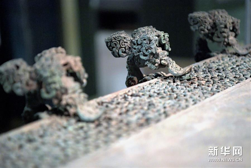 這是河南博物院展廳里云紋銅禁上的龍形附獸(2019年11月18日攝)。新華社記者 李安 攝