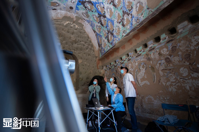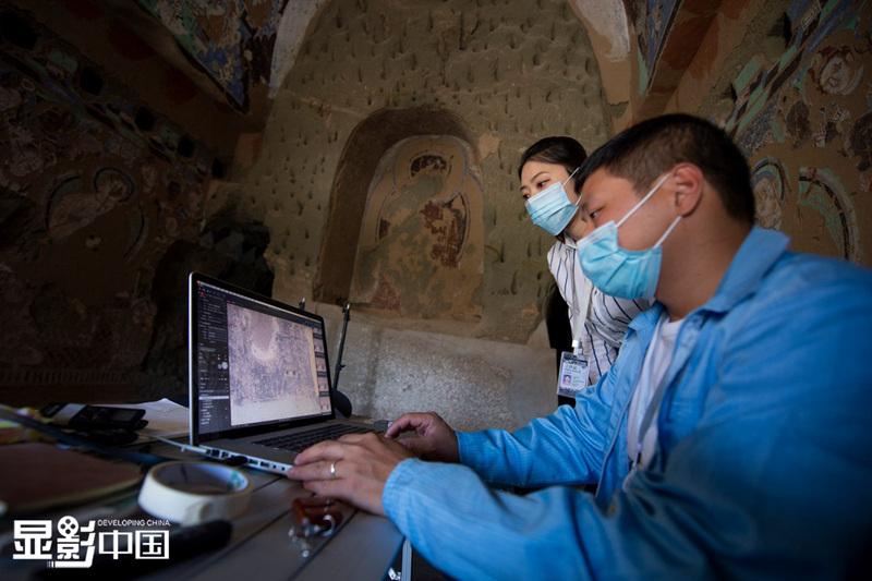 李博和賈文佳所做的工作是為讓文物能保存得更長久,讓專家學者能夠打破時間和距離的壁壘,近距離研究這些精美的壁畫。9年來,李博和團隊已經掃描110個洞窟和30個洞窟中的壁畫。李博的一天總在石窟與辦公室間來回“奔波”。新華網 茹斯坦攝