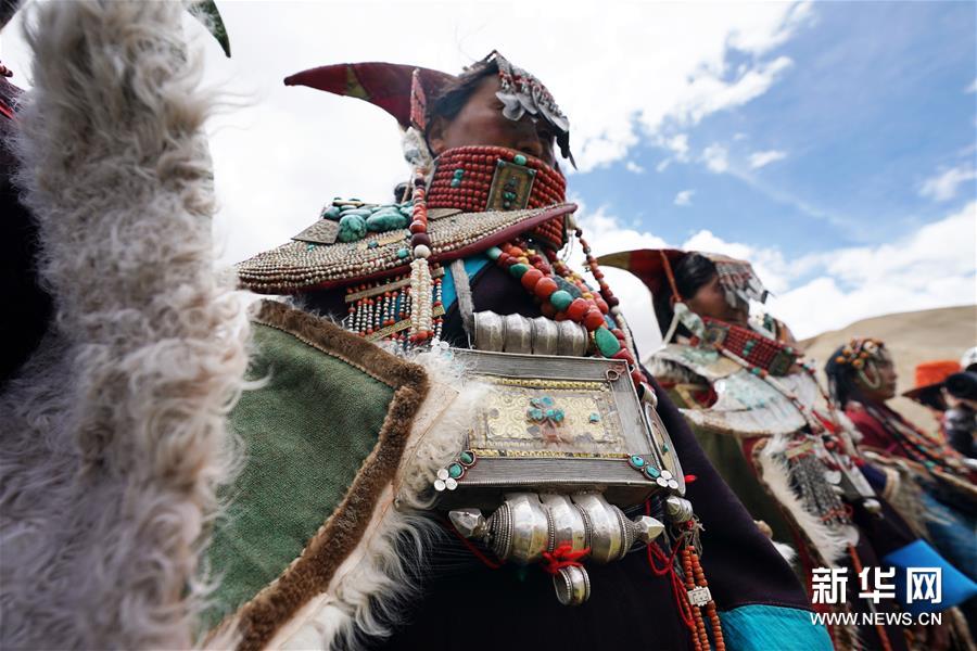 在西藏阿里地區普蘭縣科迦村,村民在展示普蘭服飾(7月28日攝)。新華社記者 詹彥 攝