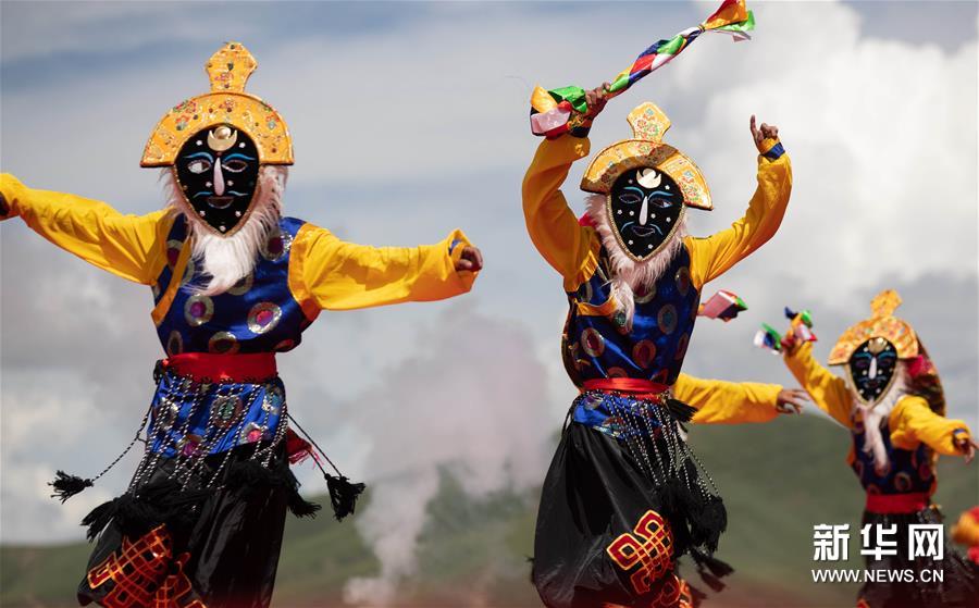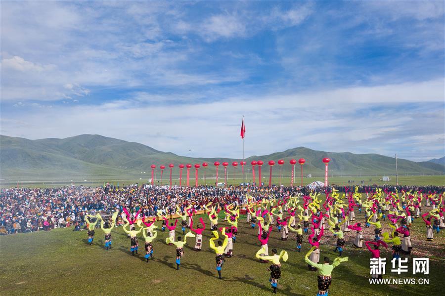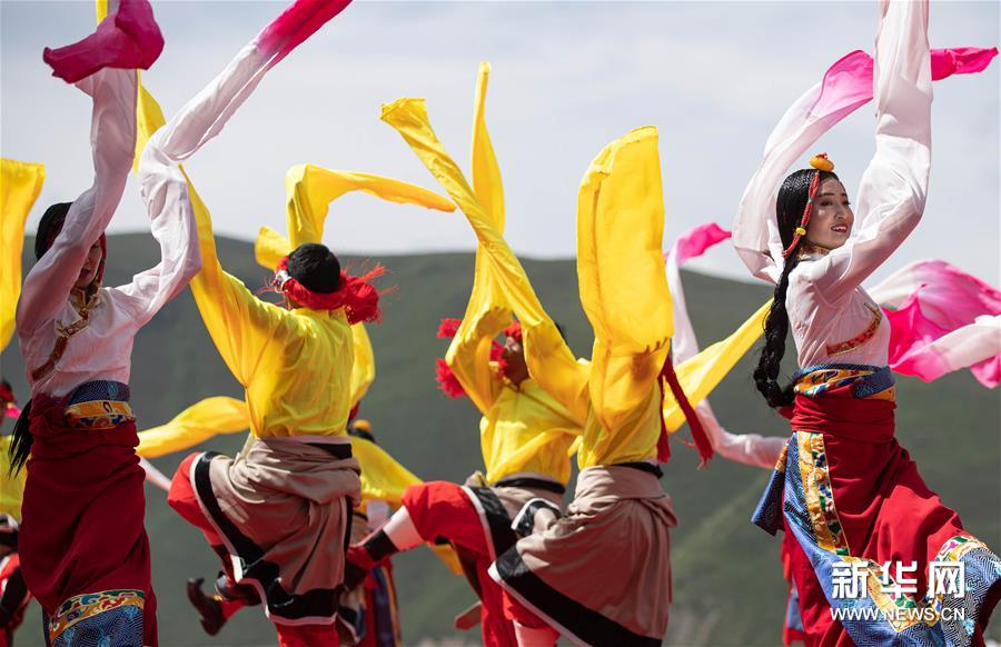 8月6日,當地群眾在表演舞蹈《美麗的金馬色達》。8月6日至8日,四川甘孜山地文化旅游節系列活動之一的色達金馬文化節在四川省色達縣扎青塘草原舉辦。當地群眾身著節日盛裝載歌載舞、歡聚一堂,文藝表演、賽馬、傳統服飾展演、非遺展示等活動精彩紛呈。近幾年,當地政府大力推動文旅、農旅、牧旅融合發展,全域旅游豐富多彩,成為當地脫貧奔小康的重要抓手。新華社記者江宏景攝