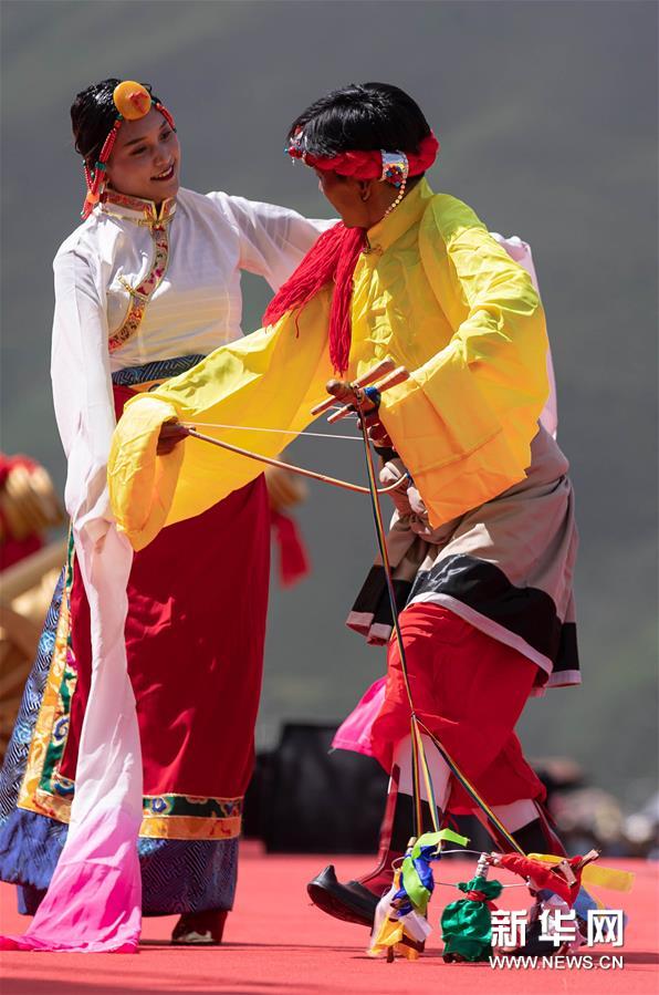8月6日,演員在表演藏戲。新華社記者江宏景攝