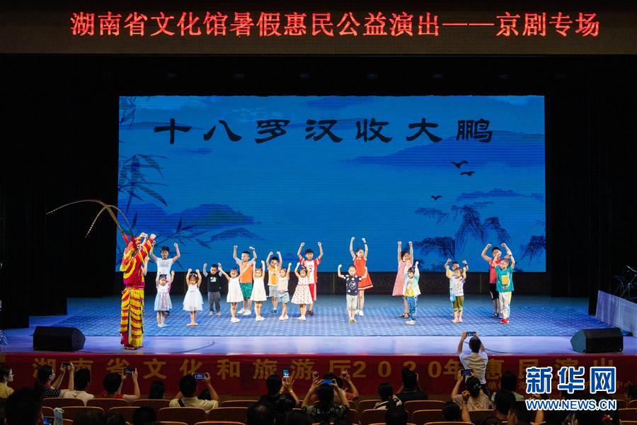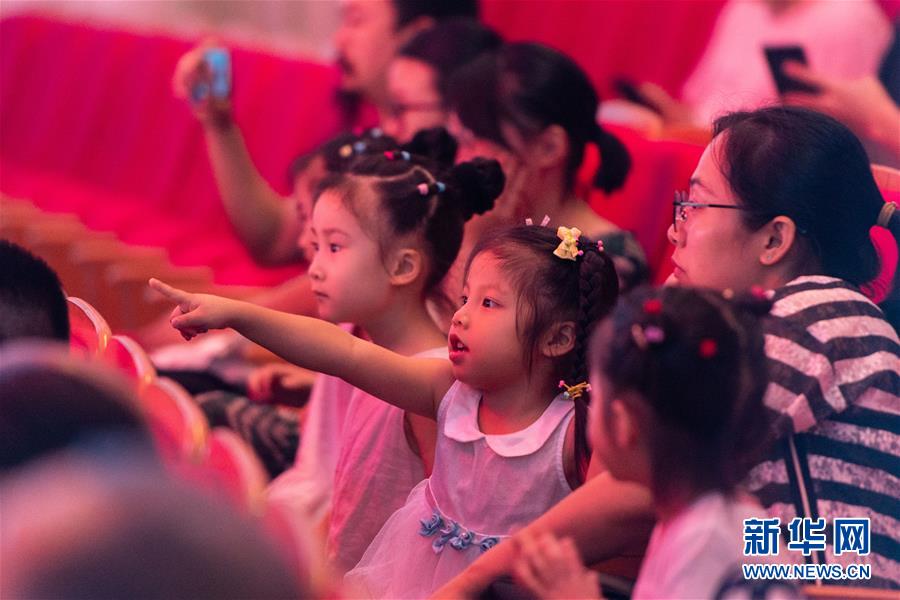 8月11日,在湖南省文化館,小朋友和家長一起觀看京劇演出。當日,湖南省文化館攜手湖南省京劇保護傳承中心舉辦“京劇藝術普及暑期惠民演出”活動。演出寓教于樂,不僅豐富廣大少年兒童的暑期生活,還讓他們從中學習到京劇的相關知識。新華社記者陳思汗攝