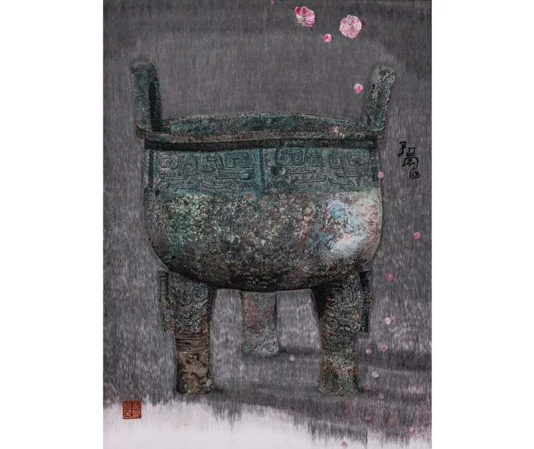 《時間都去哪兒了》是鄒英姿在用自己的刺繡語言對古老的青銅器物注入了溫暖的情感,作品被蘇州博物館收藏。