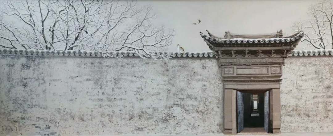 《冬至》以雪中的蘇式門樓為象征,運用滴滴繡針法繡制,將蘇式生活詩化的意蘊表現地淋漓盡致。