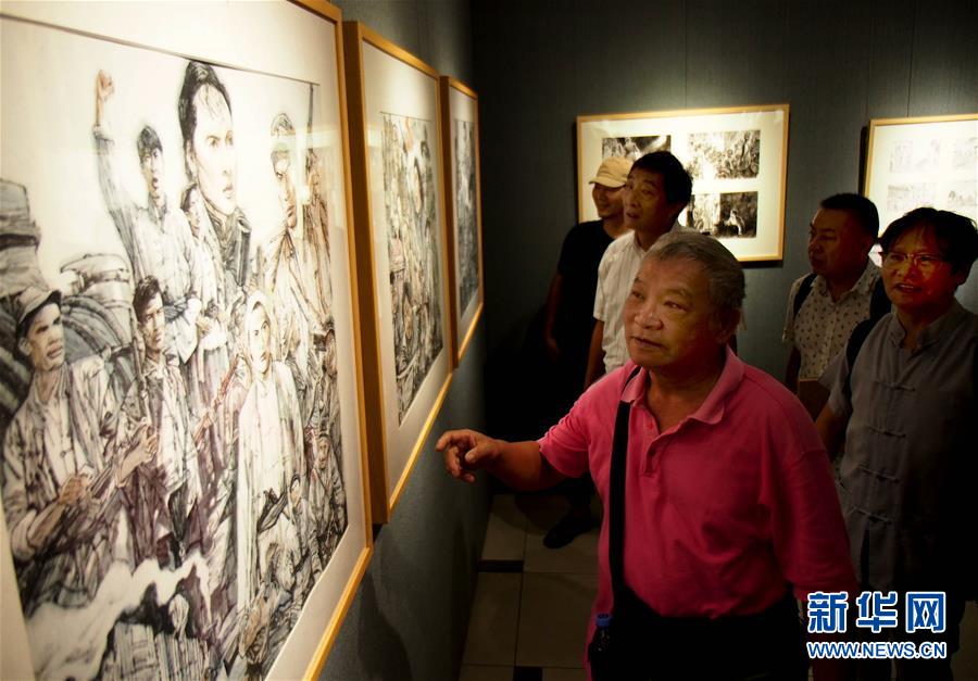 9月3日,連環畫家楊宏富(前)在他的作品前為觀眾導賞。 新華社記者 任瓏 攝