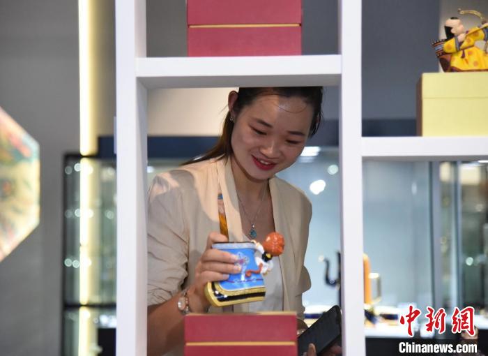 同時,展廳現場還設置了開放式直播間,精選參展作品,邀請非遺商戶和文創企業負責人共同推介產品宣傳文化。并組織網紅人員,開展“網紅帶您來看展”活動,以年輕人喜愛的直播方式觀賞展覽,線上線下互動更添趣味。