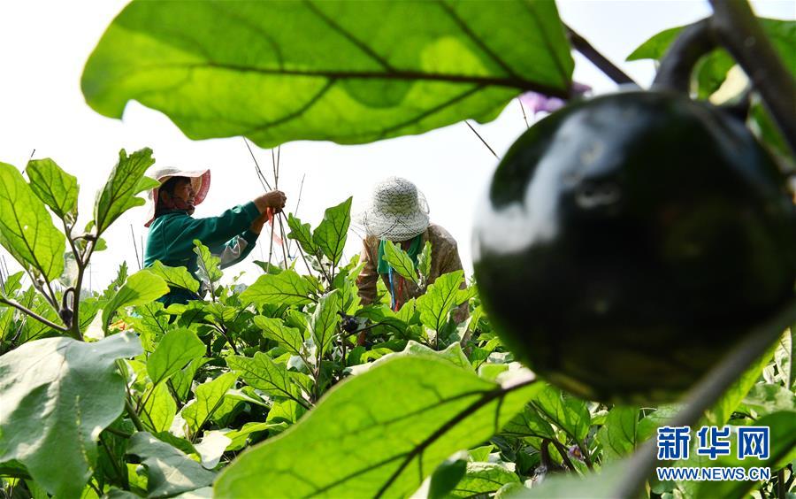 9月7日,河北省石家莊市欒城區欒城鎮南石碑村菜農在茄子地里忙碌。 當日是白露節氣,各地田間地頭一片農忙景象。 新華社發(李明發 攝)