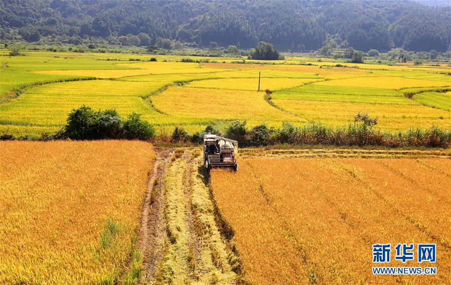 9月7日,江西省宜春市靖安縣水口鄉桃源村農民駕駛農機在收割晚稻。 當日是白露節氣,各地田間地頭一片農忙景象。 新華社發(徐仲庭 攝)