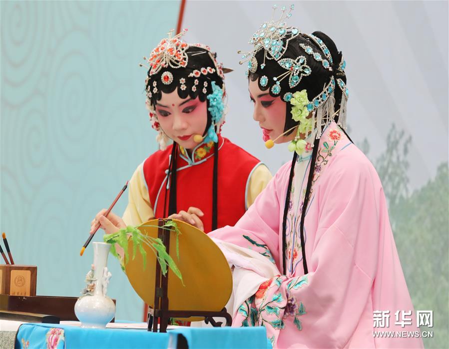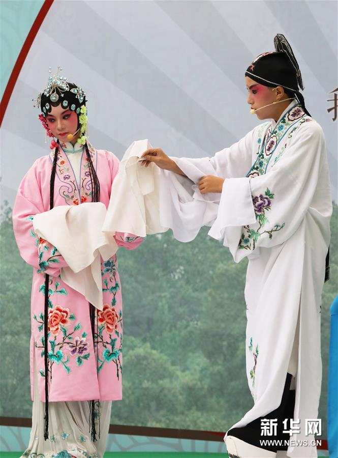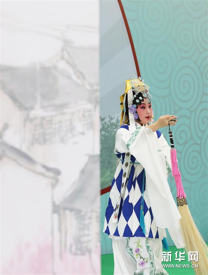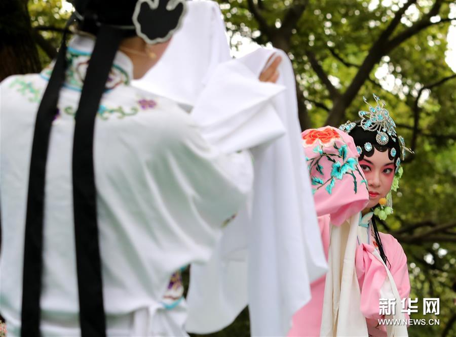 9月12日,在蘇州虎丘景區,小選手在比賽中表演昆曲。新華社發(杭興微攝)