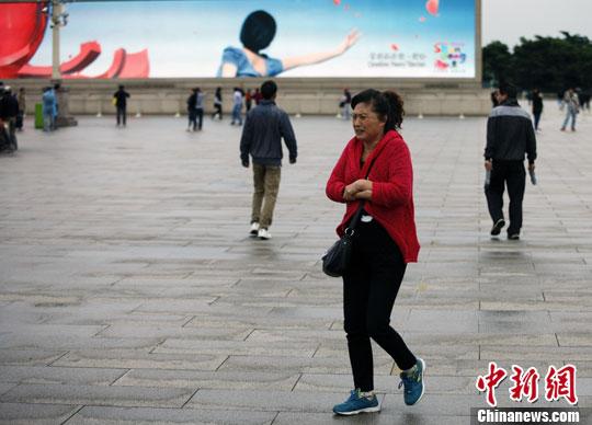 資料圖: 秋分節氣,北京下起了小雨,氣溫有明顯下降。圖為北京市民換上秋裝。中新社發 溫宸鑒 攝