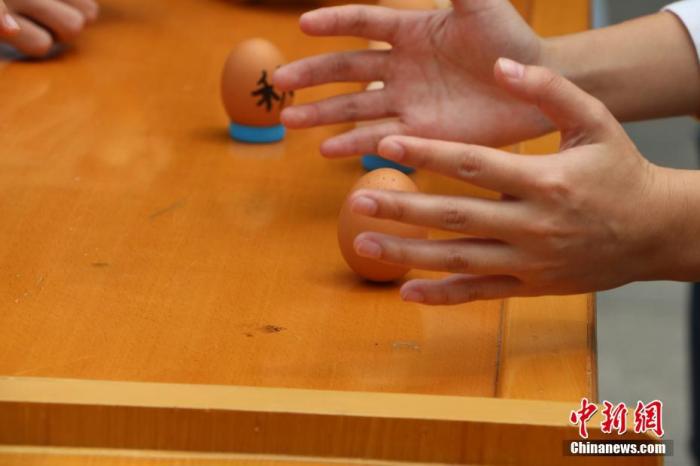 資料圖:秋分節氣,當天江西理工大學舉辦了一場別開生面的“豎蛋大賽”,不少同學在玩“豎蛋”的趣味游戲中過秋分。成陽 攝