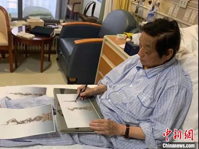 在病房中,韓美林進行手稿設計。韓美林藝術館供圖