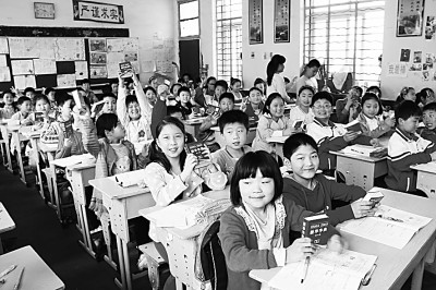 同學們領到《新華字典》時的喜悅場面。圖片由商務印書館提供