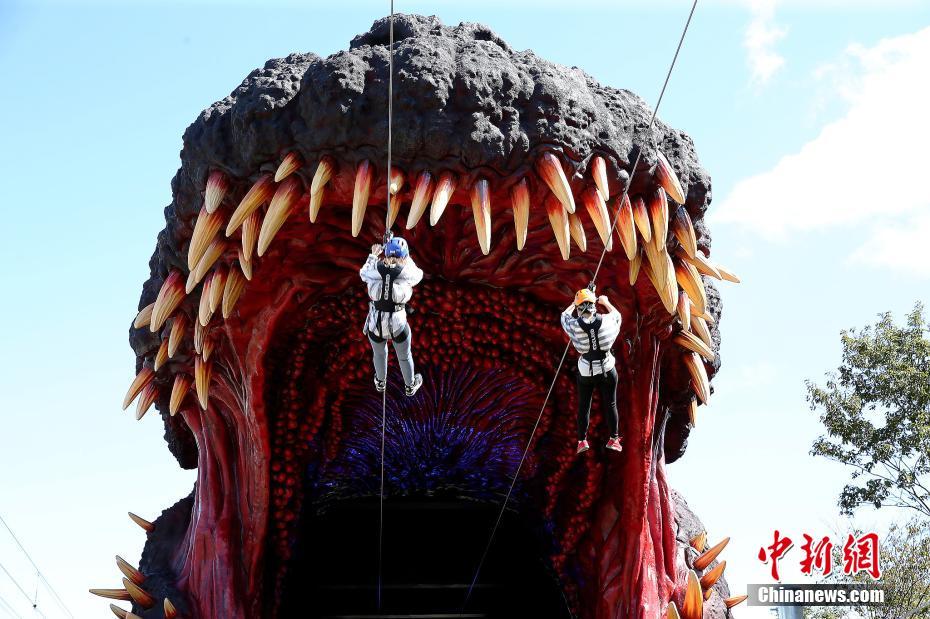 當地時間10月11日,日本兵庫縣淡路市,“二次元之森”體驗型主題公園推出等比例哥斯拉游樂設施,游客可以通過吊威亞進入哥斯拉的“血盆大口”,以“迎擊”哥斯拉。此外,該設施內還設有展覽館,展出哥斯拉電影海報、拍攝時使用過的模型等120種相關資料。