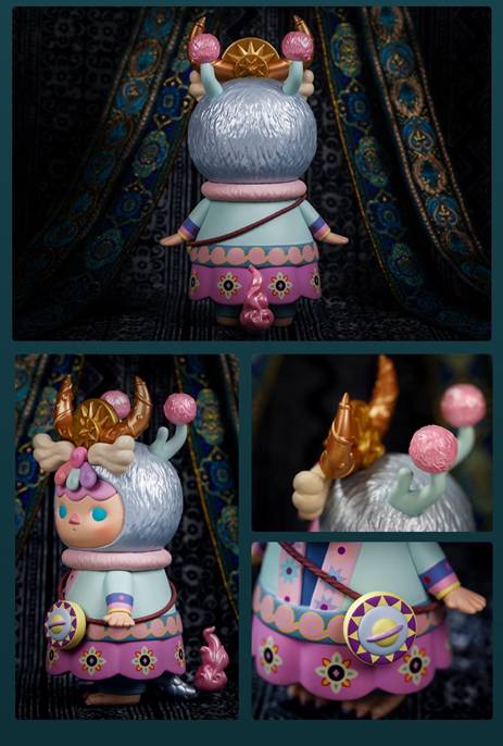 畢奇的設計顯然在細節上花費了不少心思,苗族不僅對在鼓、衣飾等方面多用太陽、太陽花的圖案,女性還會在發髻上佩戴花朵,以表示自己對太陽崇拜的一種表達方式。畢奇額部的花瓣設計正是基于此,而花瓣在苗族還是歷法或者說時間的一種標志物。這樣的民族特色設計在潮玩里實屬難得,足可見設計師的敏銳的觀察力和相對深厚的文化功底。