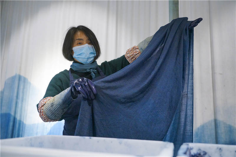 “我們通過文化旅游來促脫貧?!蓖鯁⒌辖榻B,民宿優先租賃東溝村貧困戶田地,連續三年,按年支付土地租賃費用,幫助貧困戶增收。桃源貨棧利用其自身的民宿窗口和品牌優勢,幫助村合作社銷售產品;同時,吸納貧困戶到民宿或草木染工坊就業;還引進傳承傳統草木染技藝,打造鄉村本土文創產品。