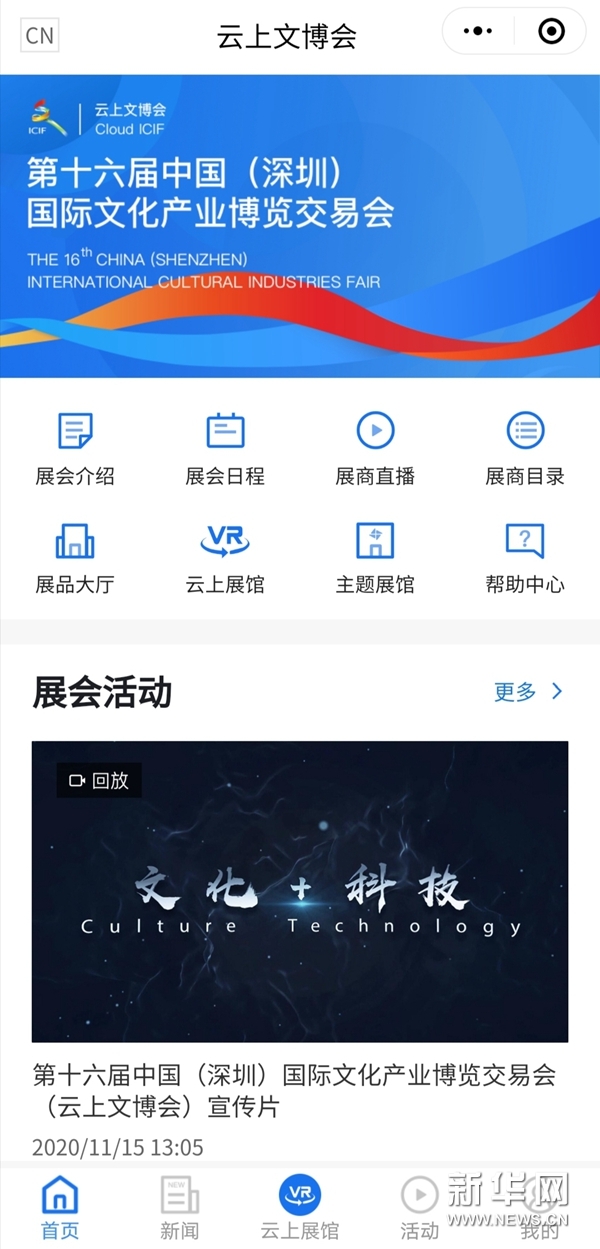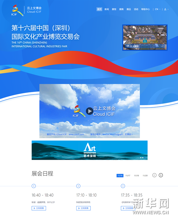 第十六屆中國(深圳)國際文化產業博覽交易會(以下簡稱文博會)于11月16日16:00正式上線。這是首次借助5G、視頻直播、VR等新技術,以“云上文博會”的形式與觀眾見面。