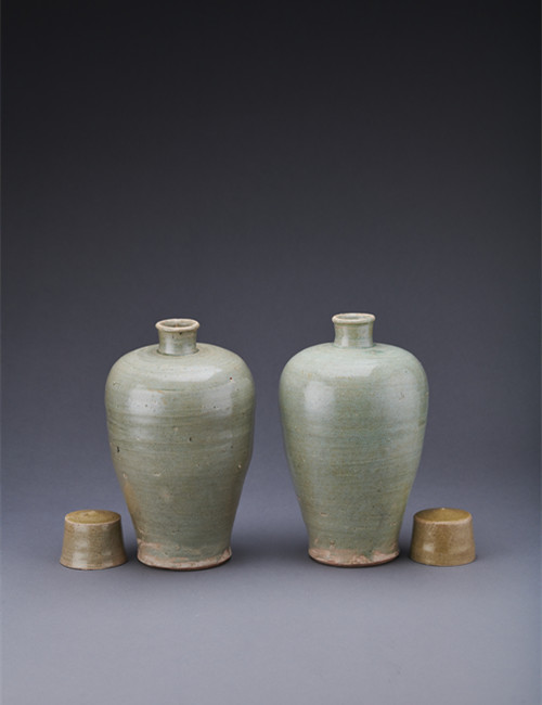 青瓷帶蓋梅瓶1對4件(國家文物局提供。攝影:首都博物館羅征)