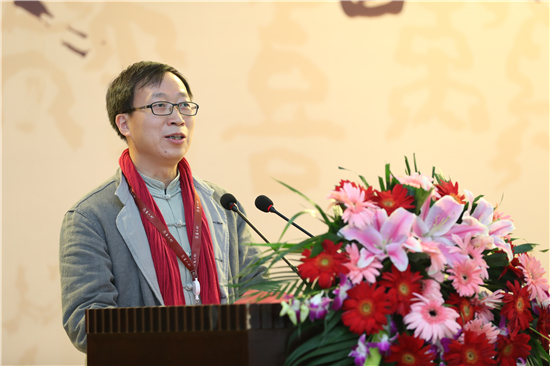 開幕式結束后,謝云藝術研討會由原中國美術家協會理論委員會副主任,《美術》雜志原主編王仲先生主持。謝云先生的書法,融篆、隸、行于一體,形成了獨特的藝術風格,是傳統與現代元素的完美結合。他的鳥蟲篆和甲骨文書寫老辣縱橫,渾厚天成,抽象空靈。他的繪畫充滿盎然生機,樸拙天真。藝術界、學術界對謝云先生的藝術高度一致表示認可與贊嘆,并探討學術傳承等方面的更深層意義。