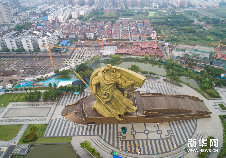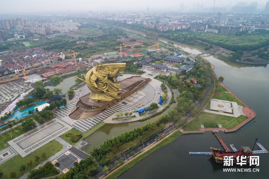 荊州市巨型關公雕像(9月16日攝,無人機照片)。新華社記者 肖藝九 攝