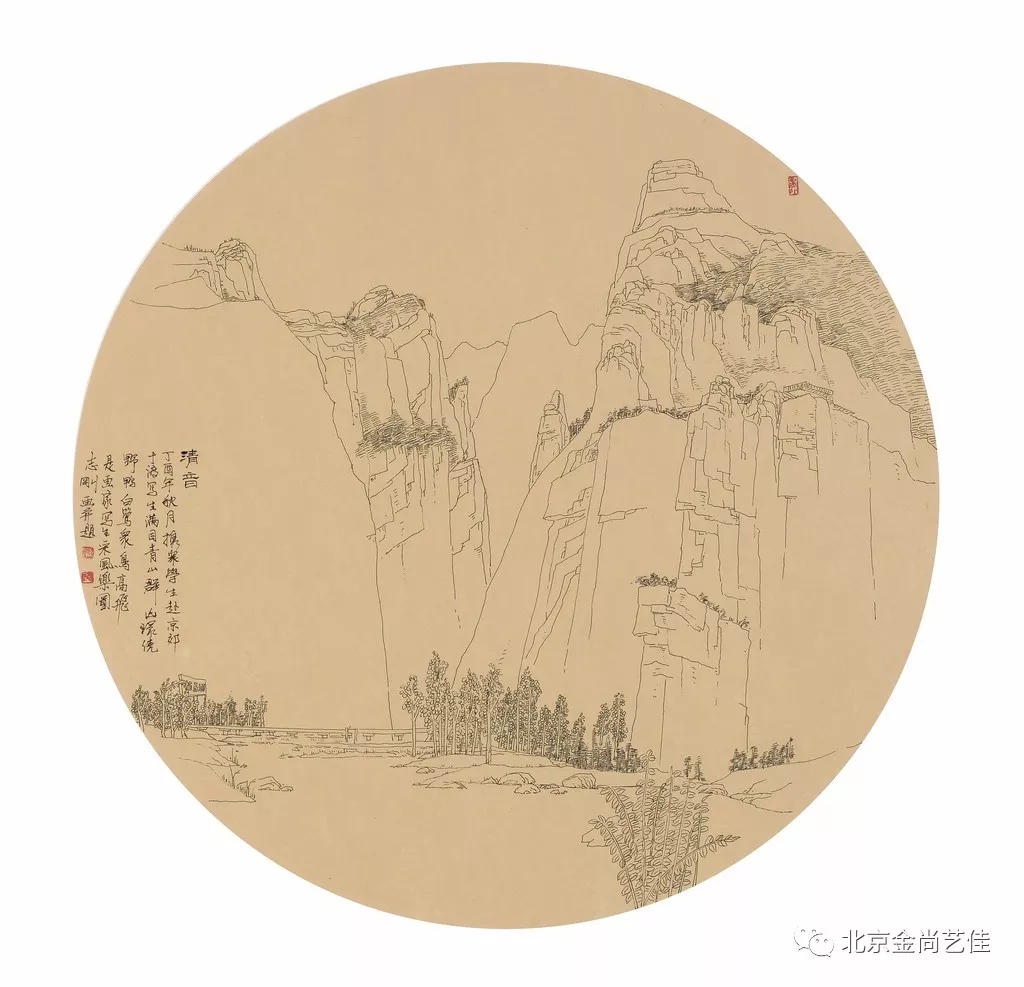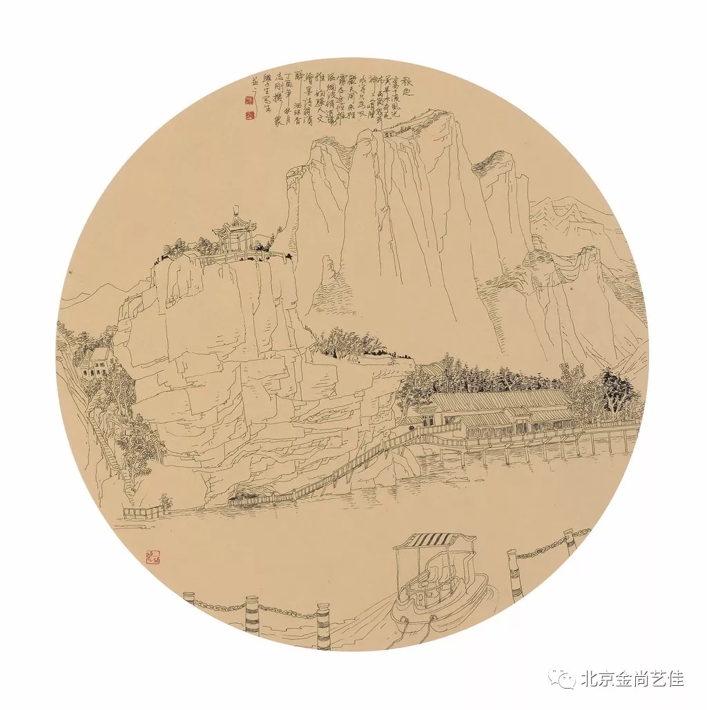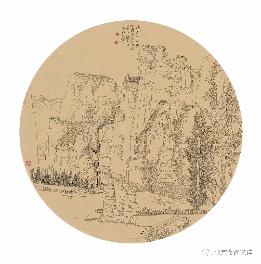 中國山水畫家的寫生方式不同于西方風景畫家聚焦于一地一景的實景記錄與描摹,而是要求畫家在真山真水中,飽游飫看,目識心記,搜盡奇峰、采一煉十,通過主體心源的體認,度其妙而取其真,有意識地從精神的層面切入對客觀物象的理解和感悟,隨心成跡,超以象外,將自然之水,化為胸中之水;將自然之山,化為胸中之山,再化為筆下之山,筆下之水,基于自然之美生發出心象之美。志剛入選中國美術家協會、中國工筆畫學會主辦的國家級美展并獲獎的《千秋寒月》、《大漠之魂》、《愛我家鄉》等作品分別脫胎于北京圓明園、新疆庫爾勒胡楊林及山西盂縣神泉村的寫生。從這些作品看,志剛是領悟了中國山水畫“外師造化、中得心源”的真諦的。