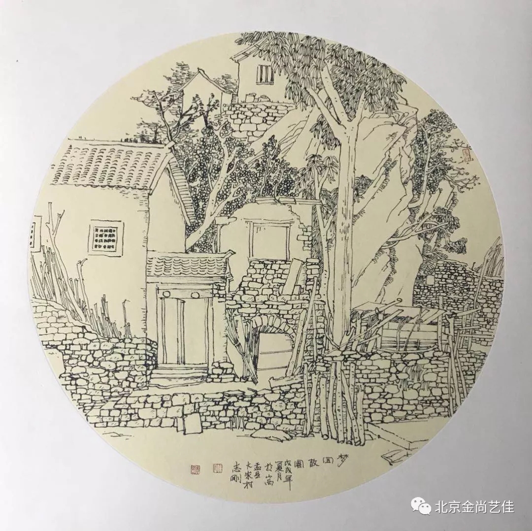 志剛的故鄉是山西盂縣神泉村,他生于斯,長于斯,在故鄉度過了自髫童至青年的美好時光。弱冠后先后到山東東營勝利油田、北京工作了近四十年,但故鄉已深深印在他的心里,始終縈繞在他的夢中。他每年都不止一次地回到家鄉,家鄉的一草一木,一溝一壑、一泉一石,民居村落,斷壁殘垣,都承載著他太多的記憶,寄寓了太多的情感。他的履跡遍及盂縣的角角落落,在盂縣神泉村、駱駝道村、土嶺村、大汖村的速寫,勾畫了他熟悉的家鄉景物,他筆下的每一組依山就勢建筑的櫛次鱗比的民居,每一道蜿蜒曲折的蹬道,每一排參差錯落的柵欄,每一垛亂石砌就的院墻,每一座山,每一道嶺,每一棵樹,每一條河,都記錄了他對家鄉地域文化的理解,記載著歲月的滄桑,透發出淡淡的鄉愁,散發著泥土的芳香,承托著他對家鄉誠摯的愛。志剛與家鄉風物心神契合,緣物寄情,境由心生,讓我們感受到他家山之戀的深沉和田園情結的溫度。