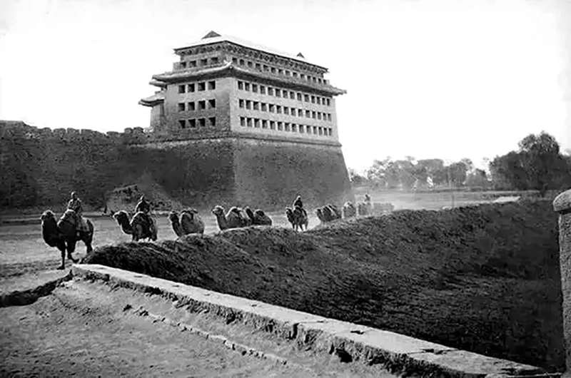 20世紀初,駱駝商隊經過北京的城樓下