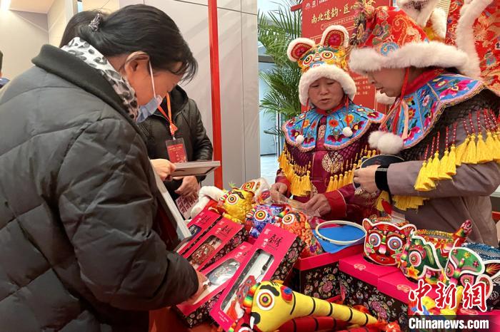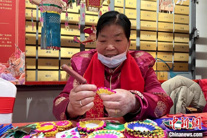 記者現場看到,由刺繡、花燈、皮影、剪紙、布糊畫、木版年畫六項非物質文化遺產項目構成的“非遺文化藝術回廊”吸引了來往民眾的目光。定神細視,不同非遺項目又包含了不同流派,在鮮明的對比中盡顯地域文化特色與風采。