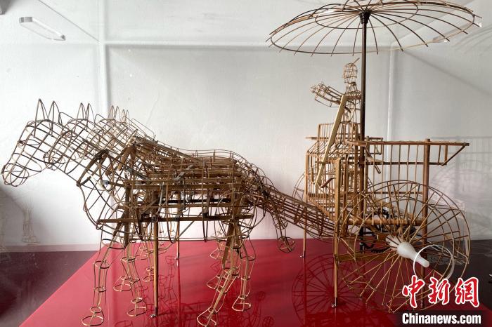 西安八旬老人用900多根竹條讓“兵馬俑戰車”動起來