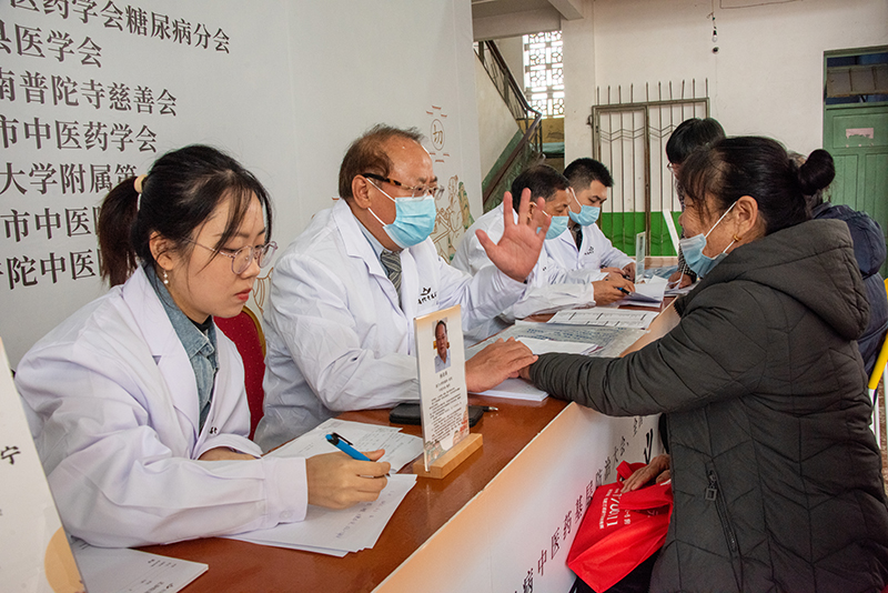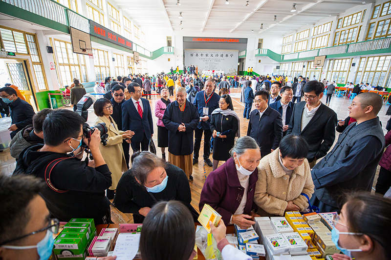 孫永章、杜治琴、翁雄宇、肖明光、則悟法師、陳寶貴、呂國健、王勝文等領導也來到義診施藥現場,向參與義診的醫務人員致意,詢問檢查、治療、群眾患病詳情。為做好疫情防控相關工作,現場也對民眾進行體溫監測、健康碼核實,對候診、導診、動線分流等進行規劃,確保義診施藥秩序。