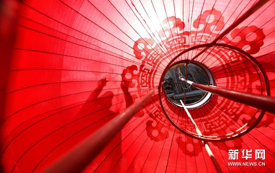 12月18日,在河北省石家莊市藁城區屯頭村,宮燈藝人在制作大型宮燈。新華社發(陳其保 攝)