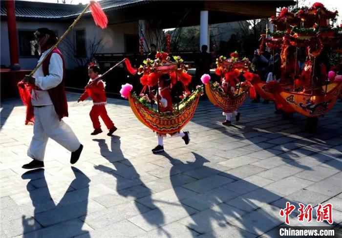 梅溪鎮的傳統旱船舞,起源可追溯到清代。據姜紀國介紹,20世紀五六十年代,梅溪境內村村有旱船隊,年長的男子幾乎個個會唱船歌,當地老百姓在干活時也常會搖起來、唱起來。