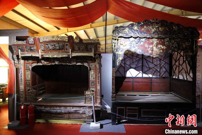 圖為來自中國20多個省份的木質古床。古床在雕刻、鑲瓷、紋路等方面極具地方特色,承載了中國民間文化和木雕工藝的精華?!∩骋婟垟z