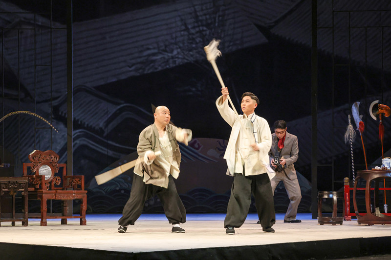 “見了觀眾一部戲才算是完成?!蓖瑫r兼任導演和主演的閆銳表示,有了2018年首演的舞臺檢驗和一段時間的沉淀,此番回歸也在舞臺處理上做出了調整,“首先臺詞上要更精煉,節奏上更緊湊?!蓖瑫r“去掉了一些展示性的動作,還是別過分炫技,要以戲為主,從人物出發?!遍Z銳說道,從導演角度上對戲進行了整體把握,從演員角度,他對人物認識和表演分寸上也與以往有了不同,“原來比較使勁,現在要放下來,松一點,才能更有強調和突出表現的東西?!?/p>