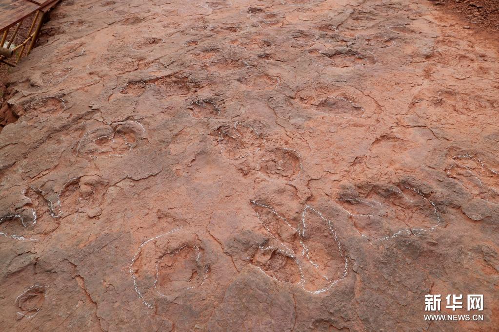 這是密集的恐龍足跡化石(4月6日攝)。新華社發(林斯乾攝)